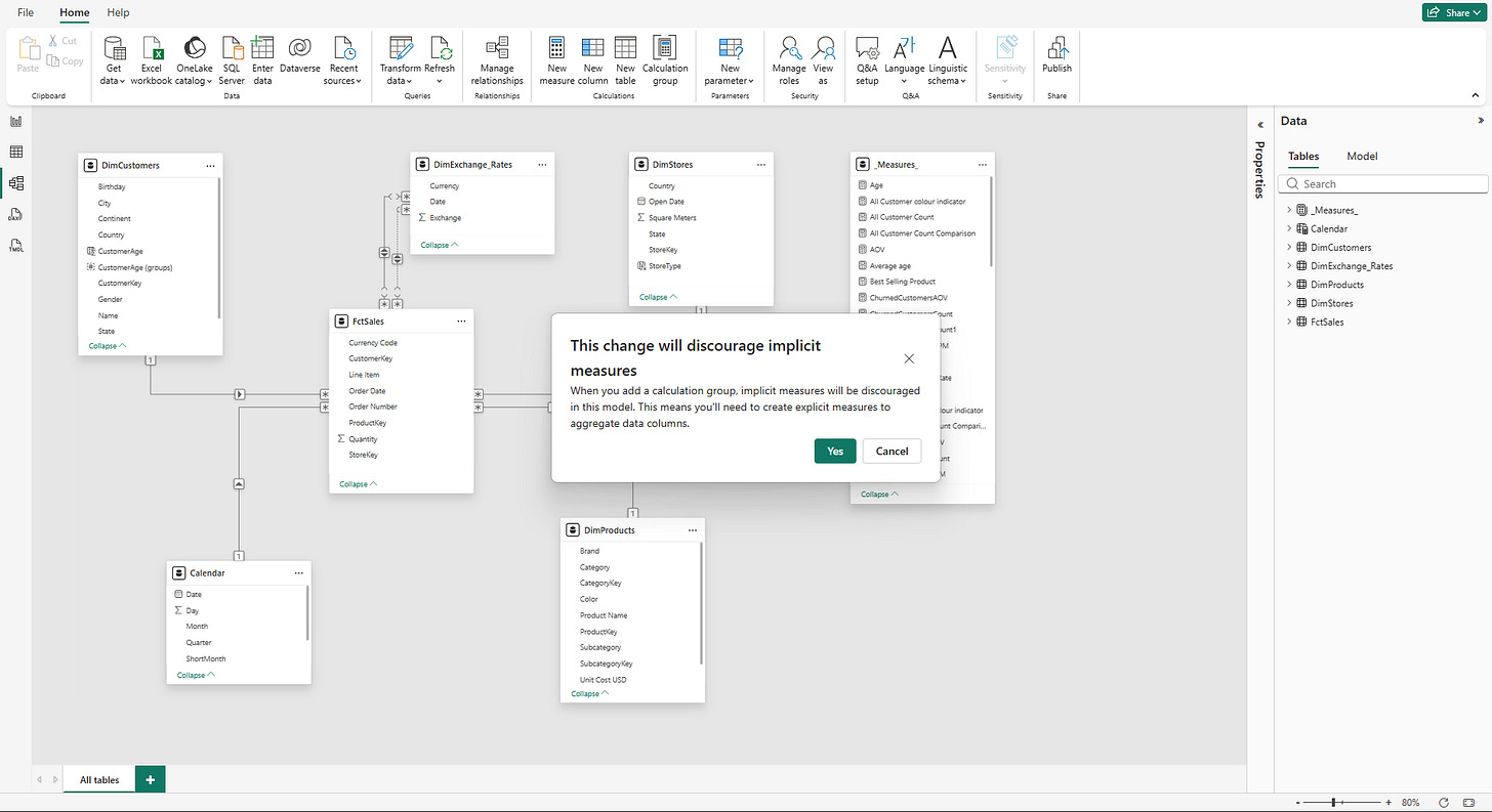 If you track four core metrics (Sales, Profit, Cost, and Margin) and need five different time-based views (Current, YTD, QTD, MTD, and Prior Year), you will manually create 20 separate measures. Calculation groups provide a solution to this problem and help you create a single, reusable set of calculations. Now you are able to apply these calculation items to any existing measure in the model.