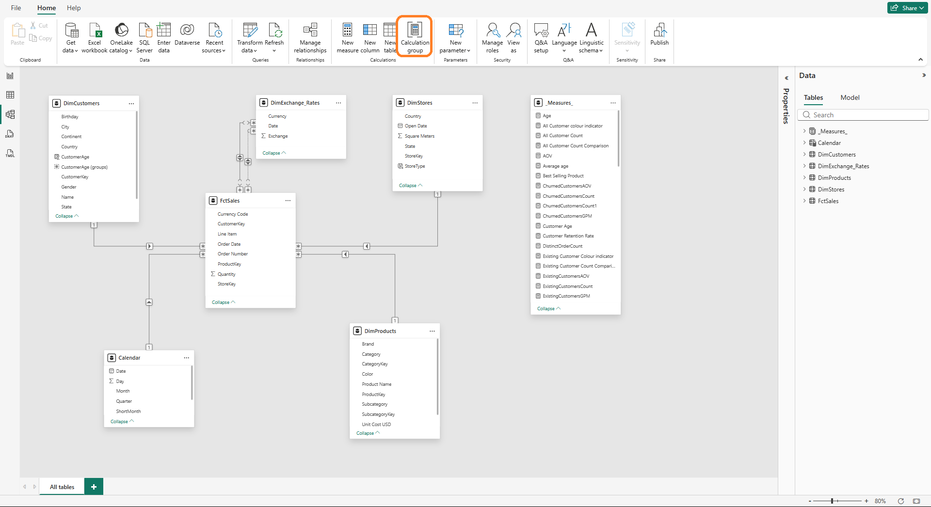 1. Navigate to Model View, find the Calculation group button in the ribbon and click on it.
