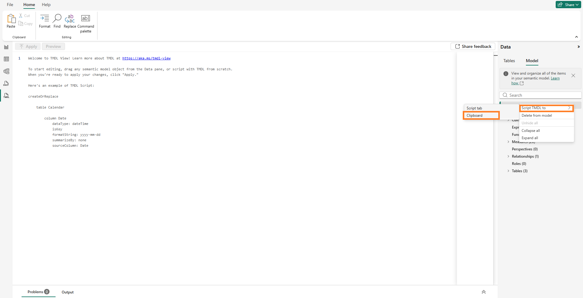 Bulk Editing: You can drag TMDL code into an AI prompt, ask the AI to populate all blank