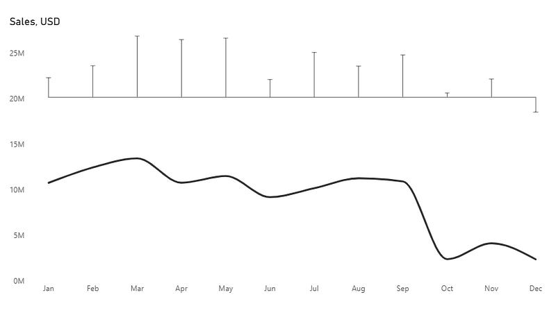You’ll see both the line chart and the error bars, but they overlap. To fix this, move the variance to the top by adjusting the height of the main and secondary Y-axes.