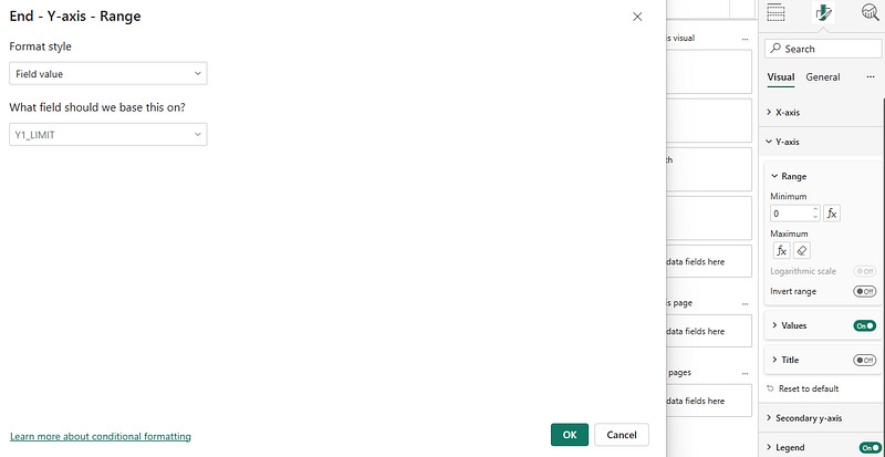 Next, we’ll create a few measures and place them on the secondary Y-axis. We’ll use these later to add the error bars.