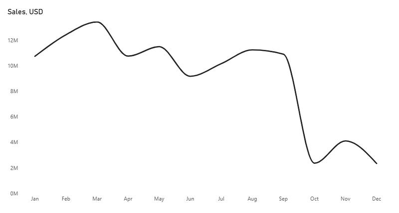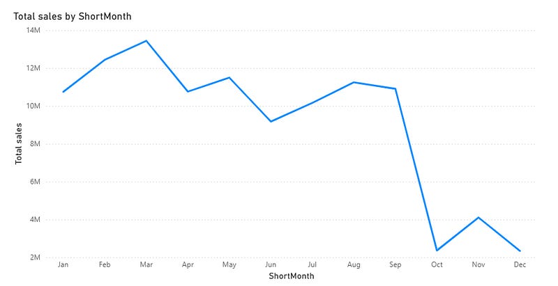 )Let’s start by creating a simple line chart using the Sales and Month columns. In this example, we’ll focus on spotting monthly trends to see how sales change over time.